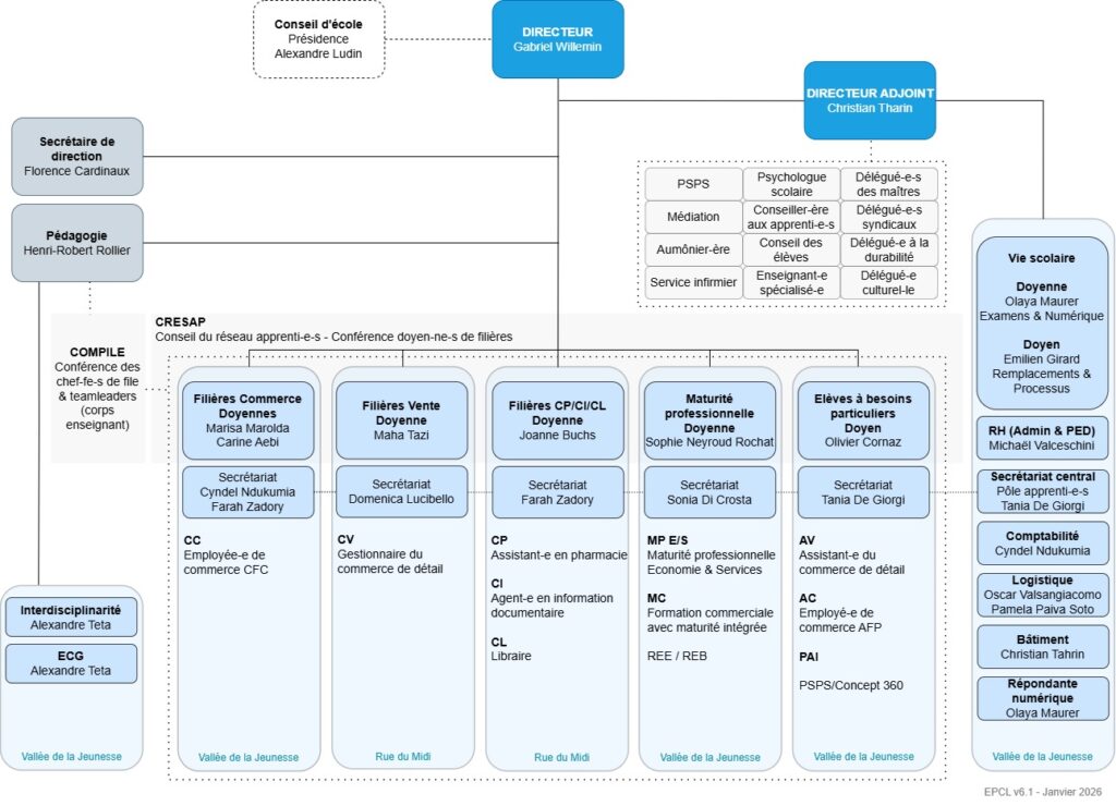 C’est avec cette vision que l’ensemble de la direction, les collaboratrices et les collaborateurs de l’EPCL, œuvrent, tout au long de votre cursus, avec professionnalisme, responsabilité et respect. C’est aussi autour de ces trois valeurs que nous souhaitons vous rencontrer.